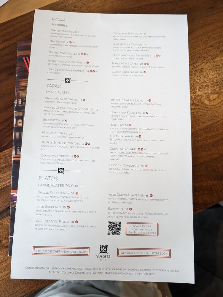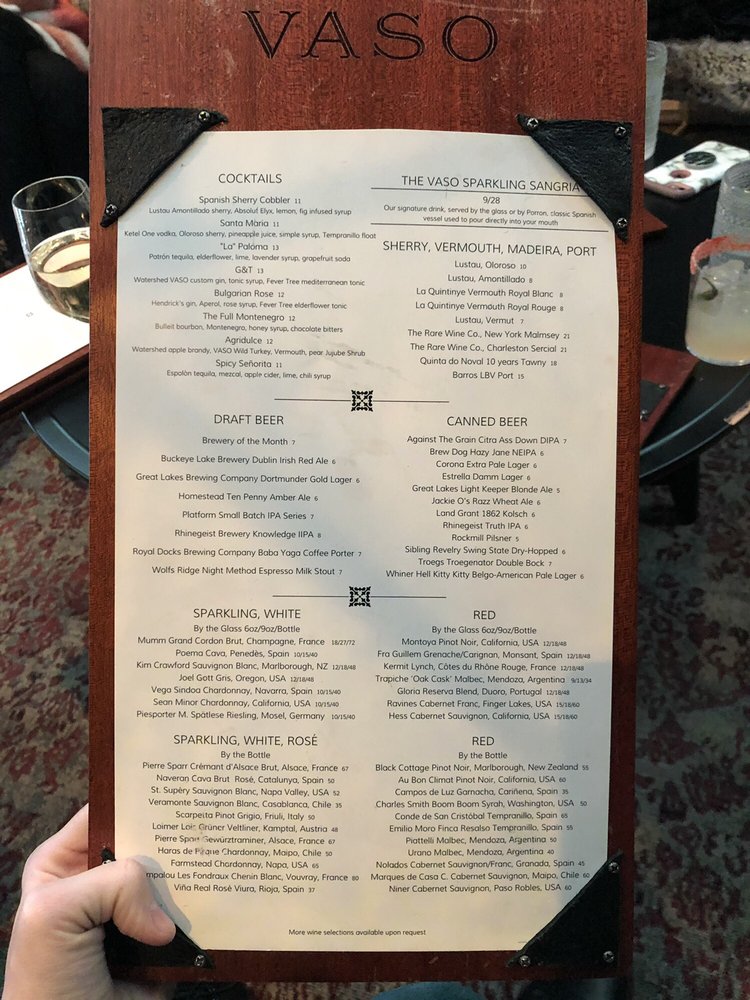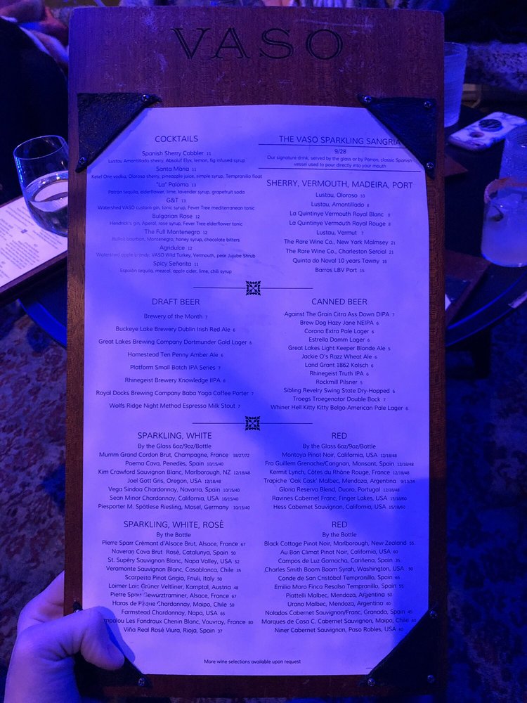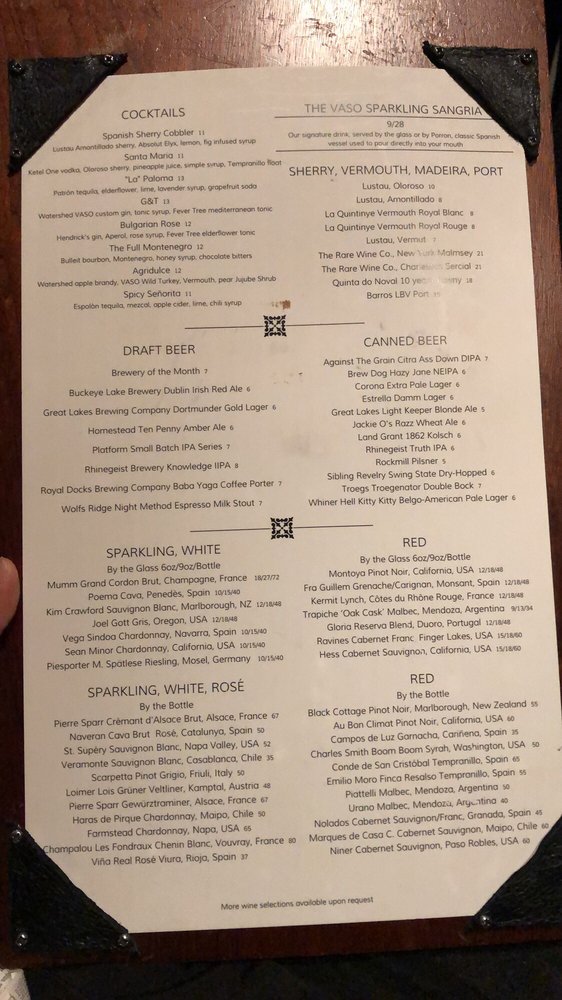 VASO offers a trendy and upscale dining experience in Dublin, OH, specializing in tapas and small plates. They provide a variety of options, including vegan choices and gluten-free dishes. The menu features unique items like Duck Cannoli, Lobster Roe Deviled Eggs, and Mushroom and Cheese Spring Rolls. Customers have praised the excellent service and cocktails at VASO. The ambience is chic, with options for outdoor seating and heated areas. While some guests have mentioned minor issues with seating and lighting, overall, VASO provides a fantastic dining experience. The restaurant's seasonal cocktails and tapas-style menu are highlights, making it a great spot for a night out with friends or a romantic date. Whether you're looking for a happy hour spot or a place to enjoy unique dishes, VASO is a top choice in Dublin.